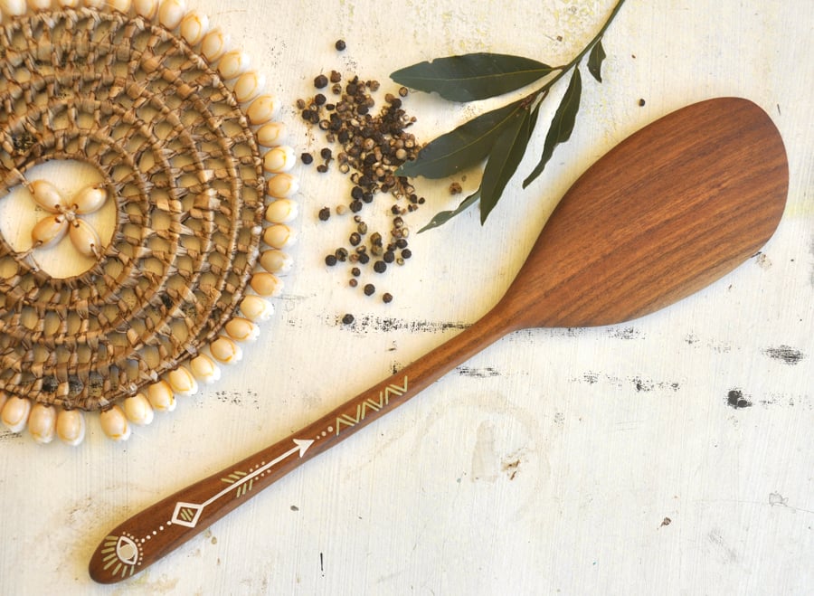 | Handcrafted Reclaimed Brigalow Spatula with handpainted detail on handle.