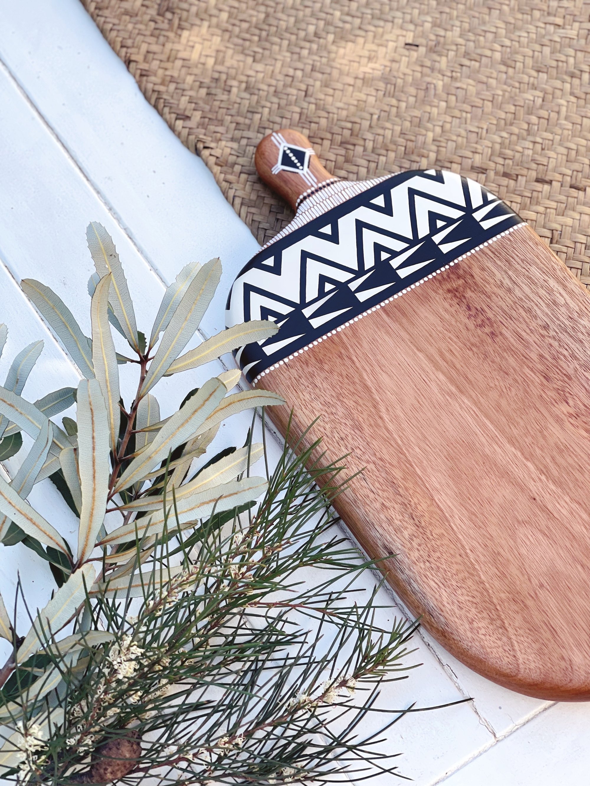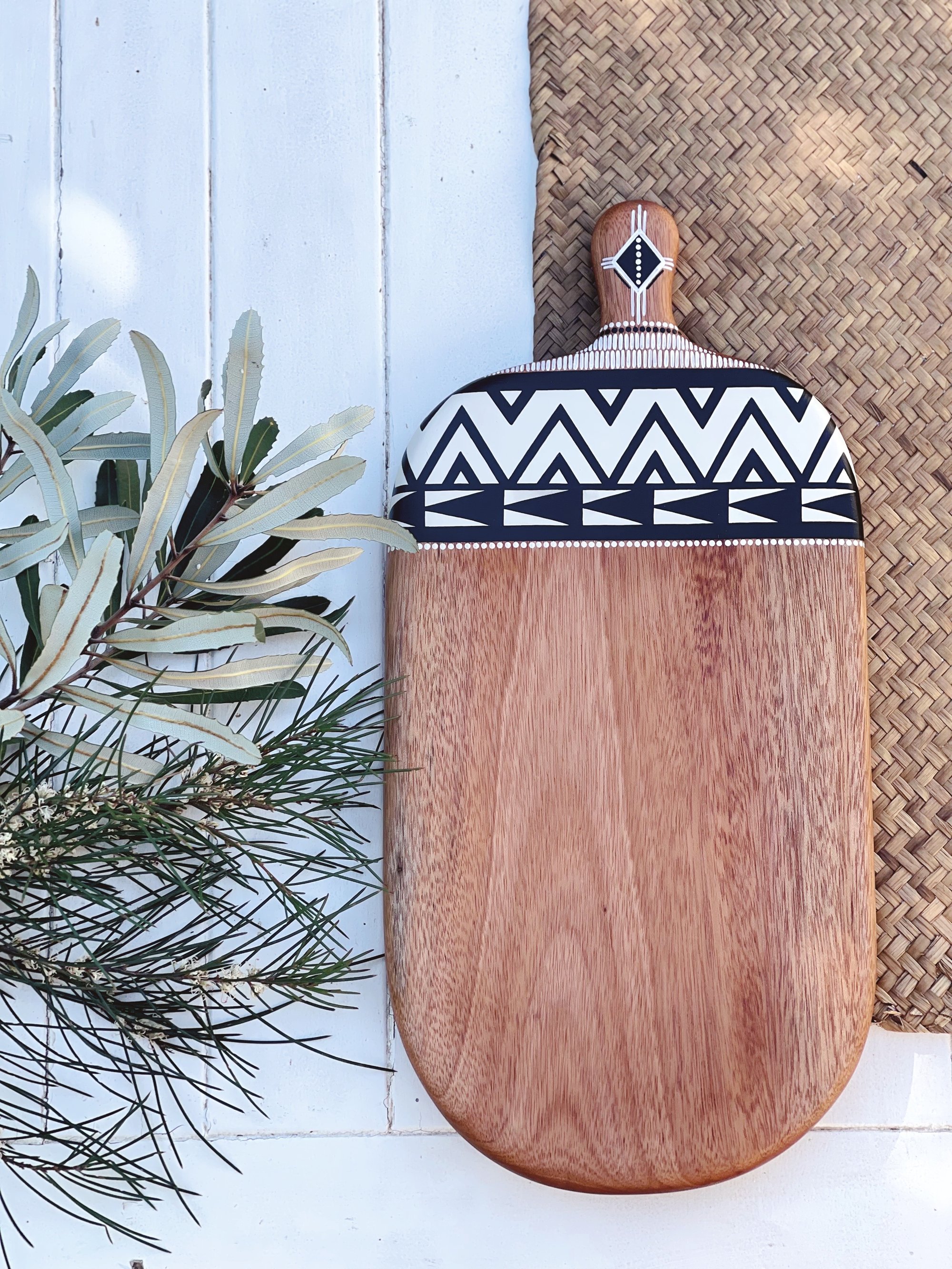 This beautiful serving board is lovingly handcrafted by Millie from reclaimed Mahogany timber.It is handpainted and sealed to protect the painted surface.